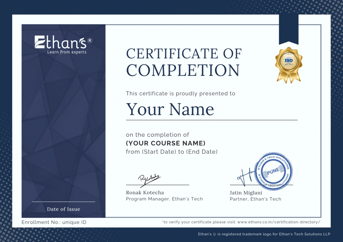 The name “Ethans” represents a commitment to “education with excellence”. It’s not just a name; it’s a culture — built by passionate industry experts who believe in practical, hands-on learning rather than rote education. Every trainer at Ethan’s is a seasoned professional with real industry exposure, making the learning experience highly relevant, practical, and impactful.
