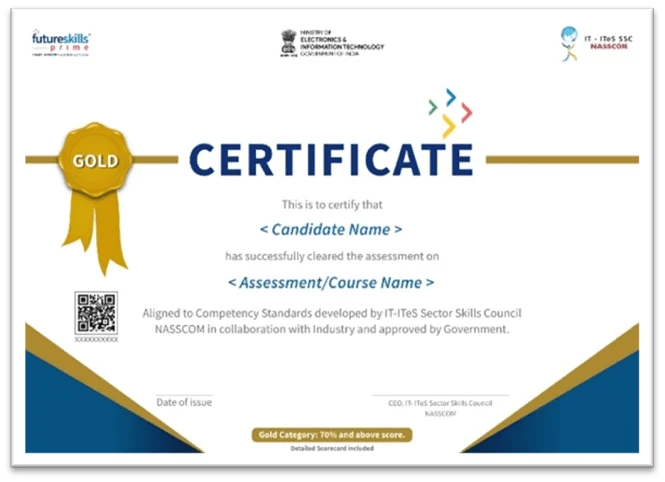 - Advanced Certification from MeitY (Ministry of Electronics and Information Technology) in association with FutureSkills Prime.